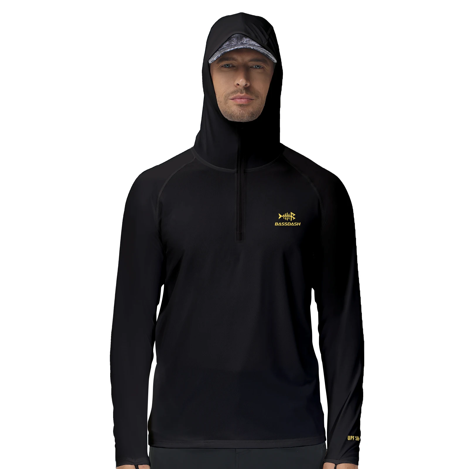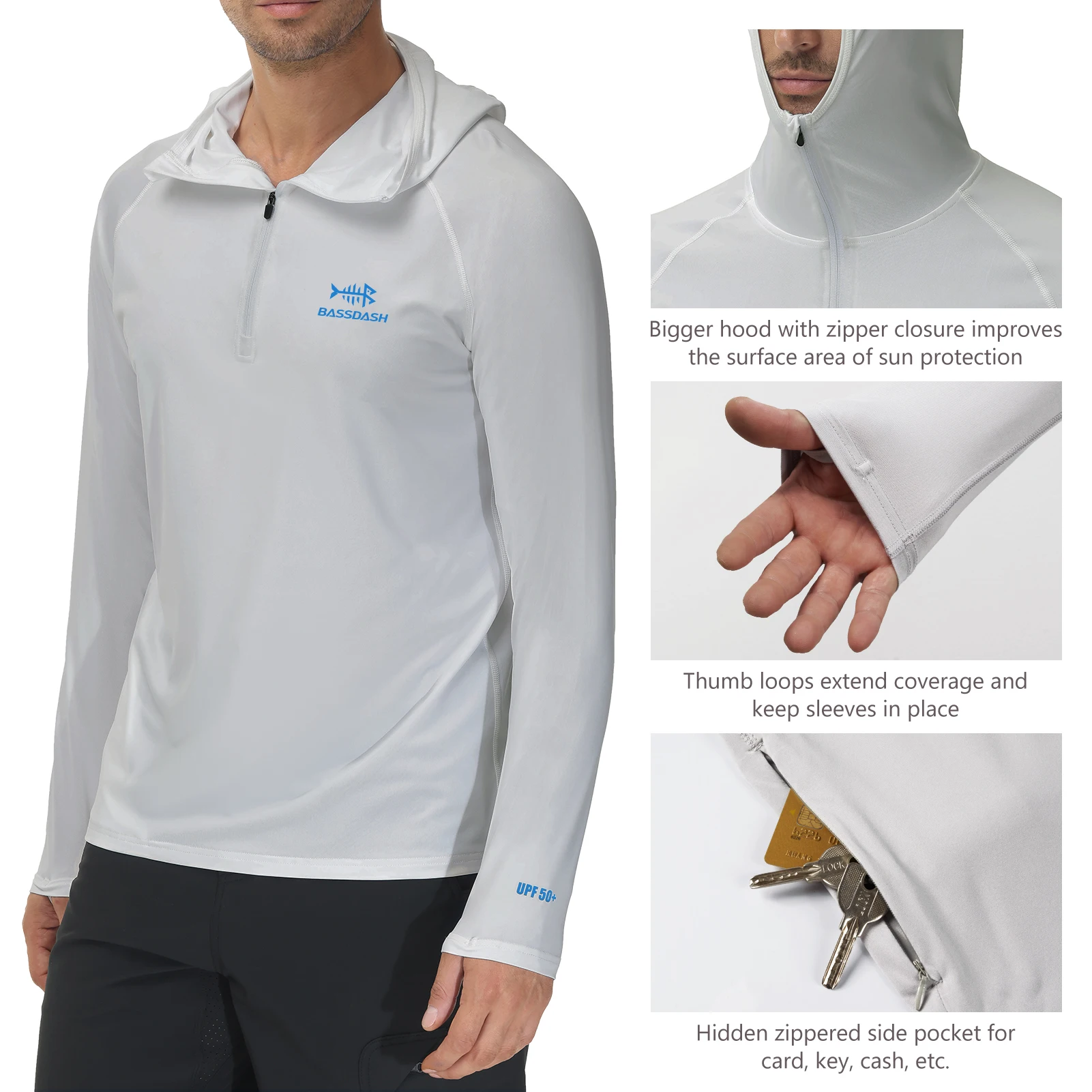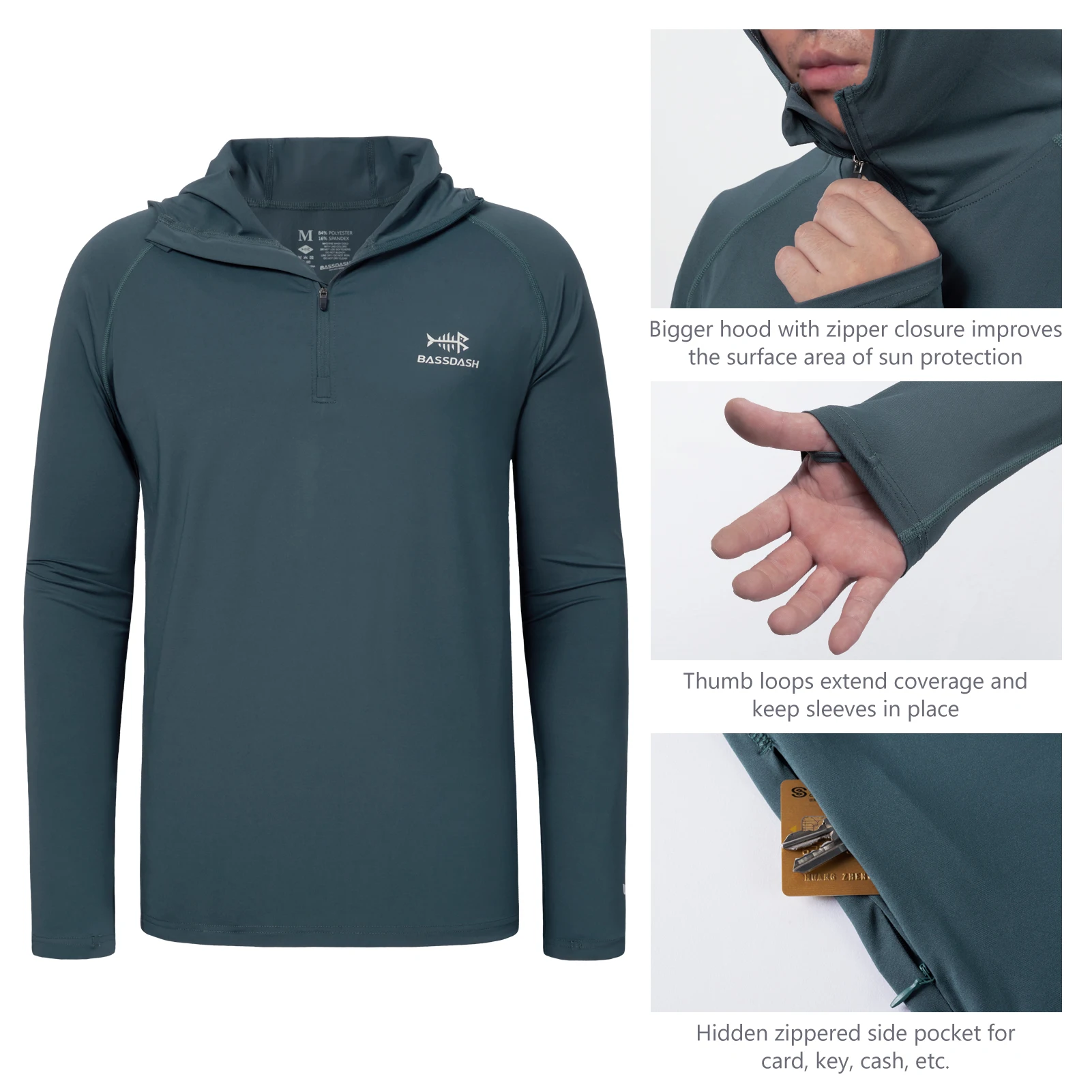 BASSDASH Men’s 1/4 Zip Fishing Hoodie Shirt UPF 50+ Quick Dry Performance Long Sleeve Sun Protection FS24M