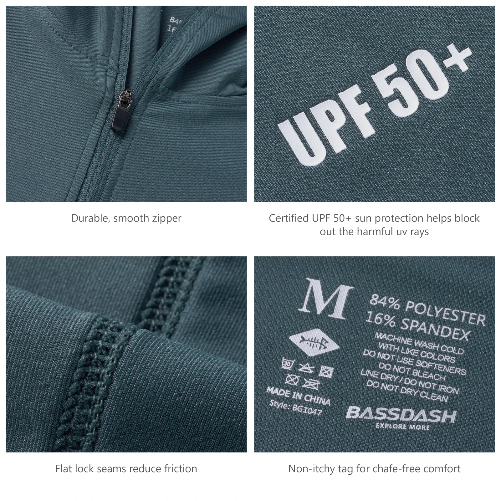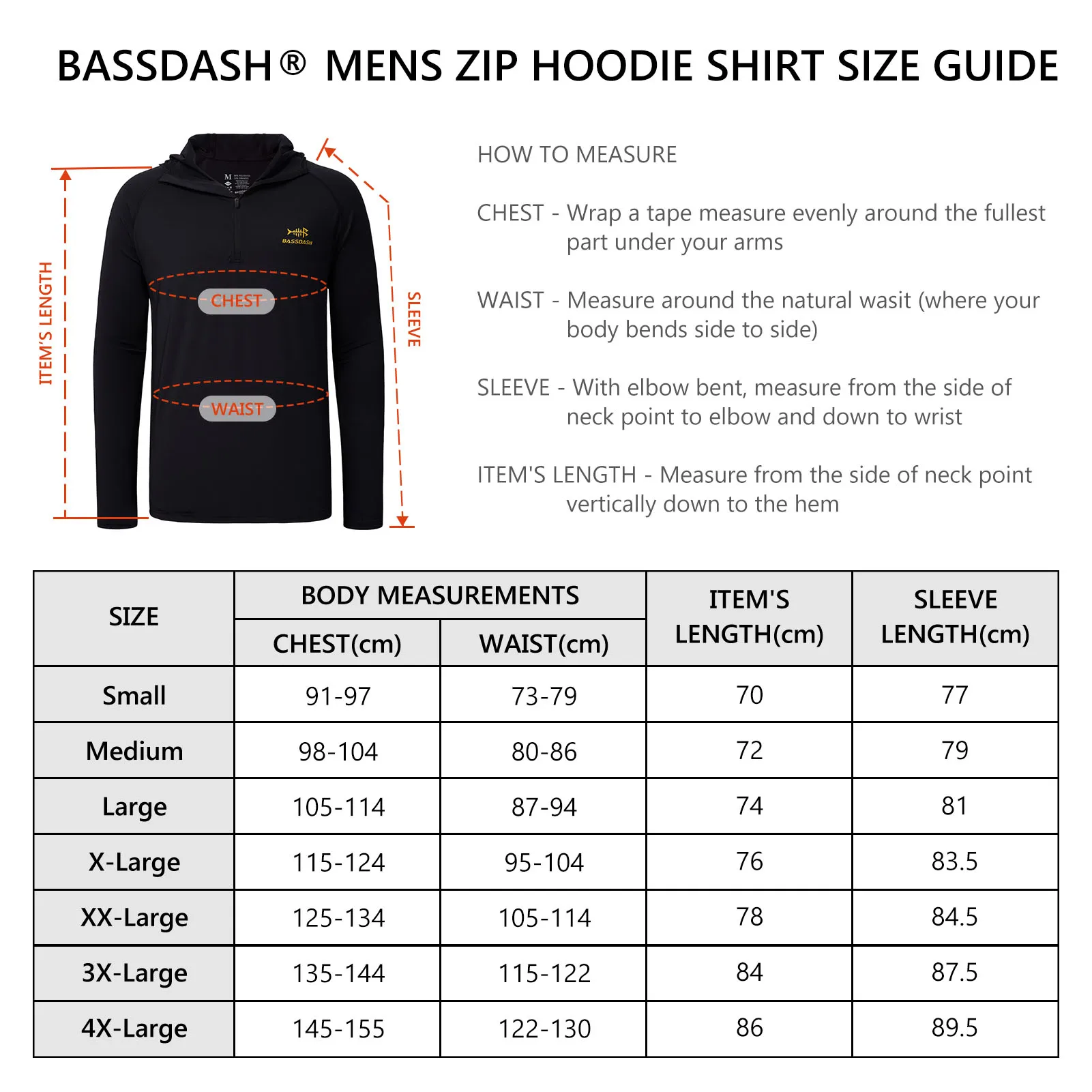 Bassdash Men’s UPF 50+ 1/4 Zip Fishing Hoodie Shirt Quick Dry Performance Long Sleeve Sun Protection FS24M