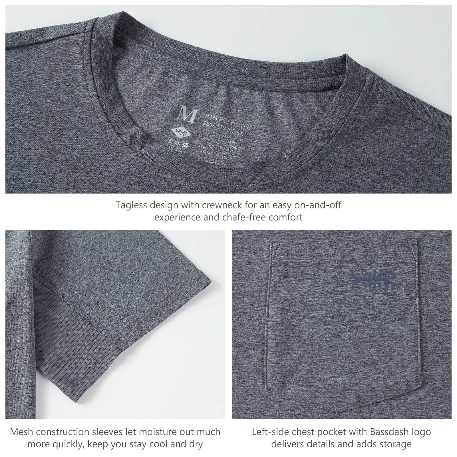 Left-side chest pocket with Bassdash fish logo delivers details and adds storage